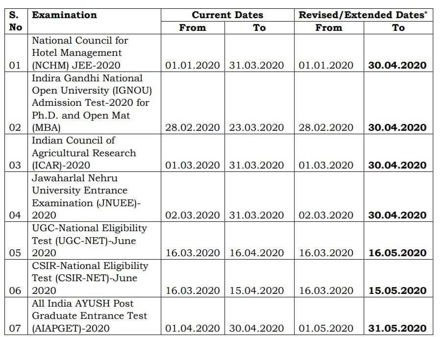 New Delhi: In view of the hardships faced by students and parents due to the COVID-19 outbreak, National Testing Agency (NTA) has extended/revised the dates of submission of online application forms for various entrance examinations held by it, including NCHM JEE 2020, ICAR AIEEE 2020, AIAPGET 2020 and others.