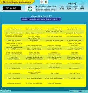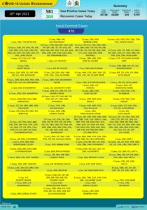 Bhubaneswar: The COVID-19 spread in Bhubaneswar assumed alarming proportions on Tuesday with the highest single-day spike of 581 cases in the last 24 hours.
