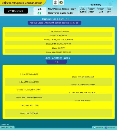 According to the Bhubaneswar Municipal Corporation (BMC), 14 of the new cases are local contacts while 10 are from quarantine.