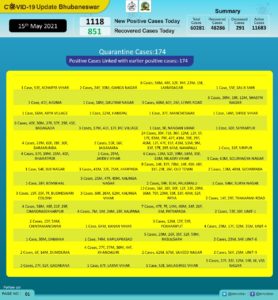 Bhubaneswar: The COVID-19 caseload in the state capital went up to 60,281 on Saturday with 1,118 fresh cases reported in the last 24 hours.