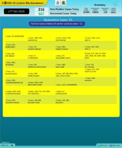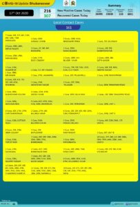 Of the new cases, 55 were detected in quarantine centres while 161 were local contacts. As many as 307 persons recovered from the disease during the period according to Bhubaneswar Municipal Corporation (BMC).