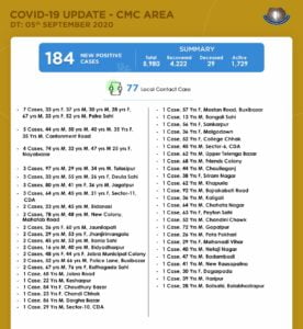Maximum 13 cases were reported from Nayabazar. With today’s figure, the total cases in the city have gone up to 5980, the CMC stated.