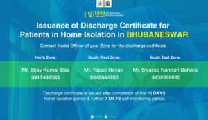 Bhubaneswar: For the convenience of COVID-19 patients in the city, the Bhubaneswar Municipal Corporation (BMC) has come out with details of issuing discharge certificates to those in home isolation.