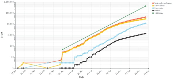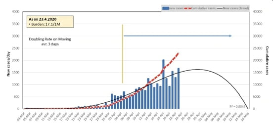 The projection shows a trend that moves in the downward curve to zero till May 16.