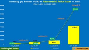 On a positive note, the discharge of 28,472 COVID-19 patients on Wednesday marked the highest number of recoveries in a single day in the country. Besides, the number of recovered cases (7,82,606) have surpassed active cases by 3,56,439.