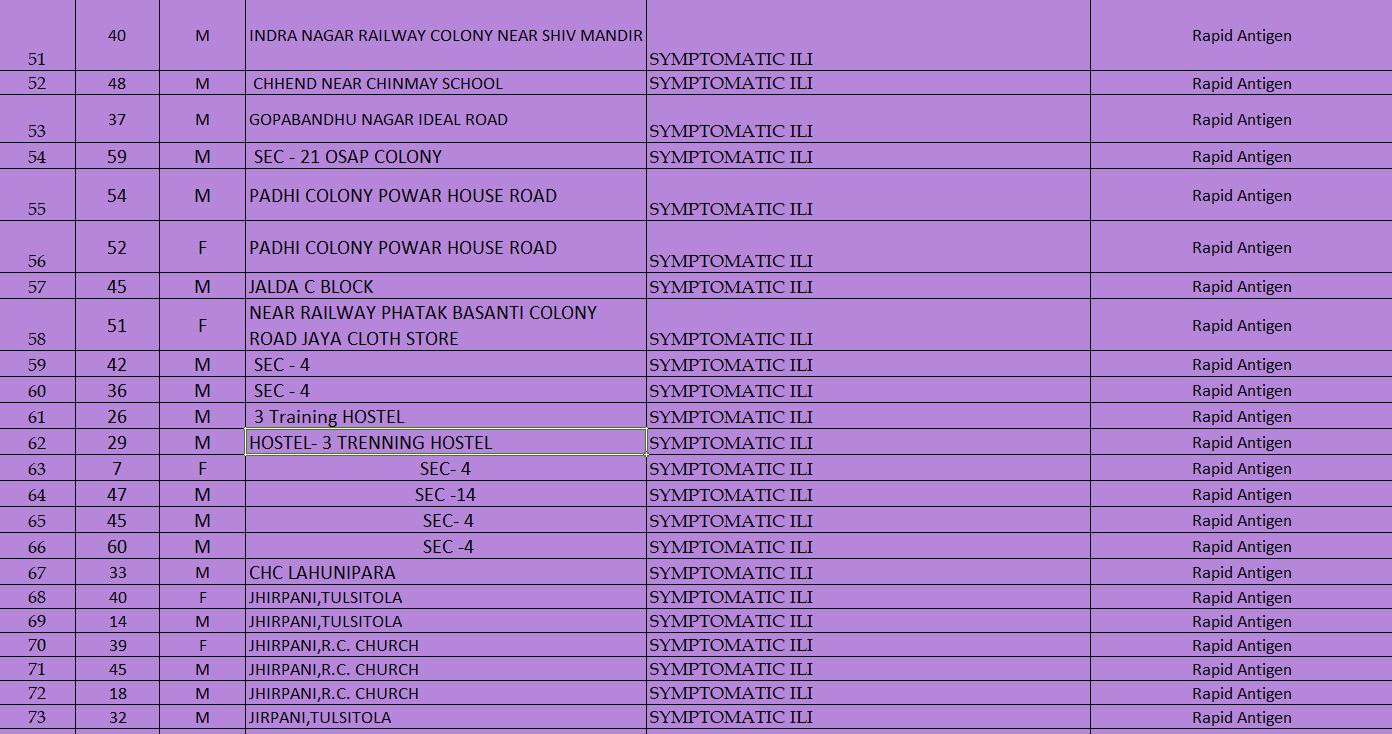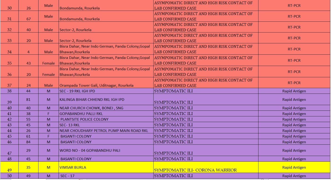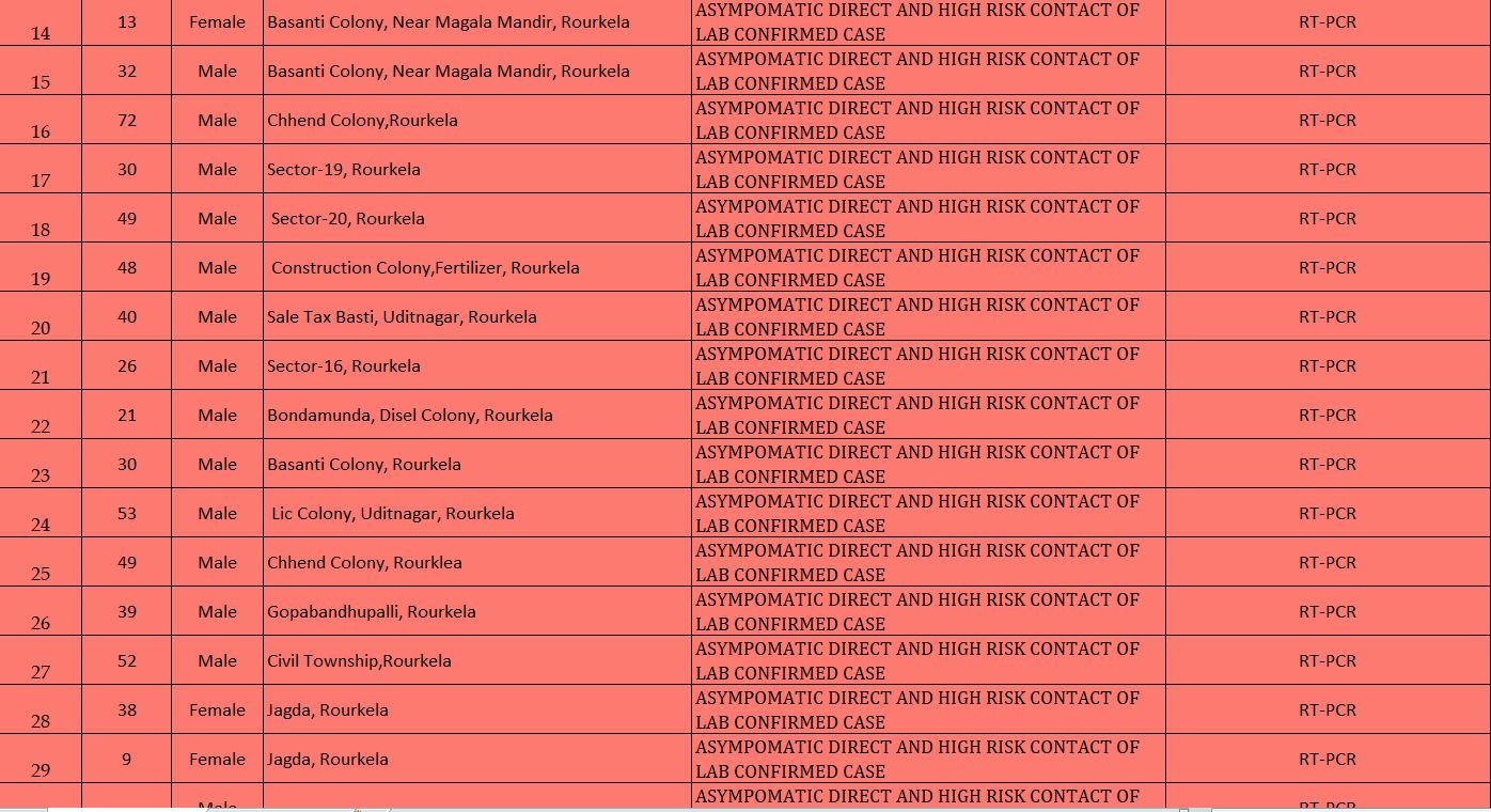 As per the district administration, 70 new cases were reported from Rourkela. 12 others from different areas in the district and one is a COVID warrior at VIMSAR, Burla.