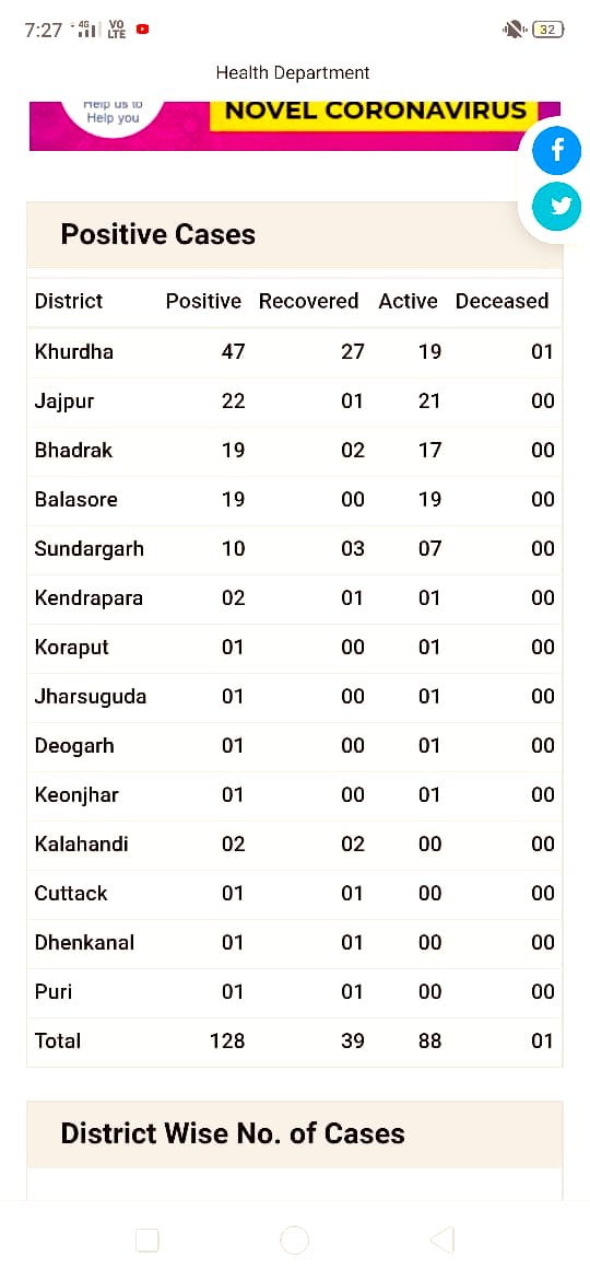 Earlier in the day, three cases were detected in Balasore and one each from Jharsuguda, Deogarh and Keonjhar.