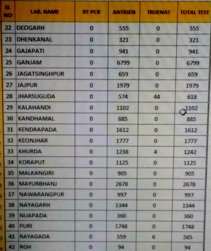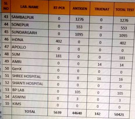 Talking about COVID-19 tests conducted in the state in the last 24 hours, Mahapatra said 50,241 tests were conducted on Sunday, which included 5639 RT-PCR, 44,640 antigen and 142 Truenat, compared to 52,795 on Saturday.