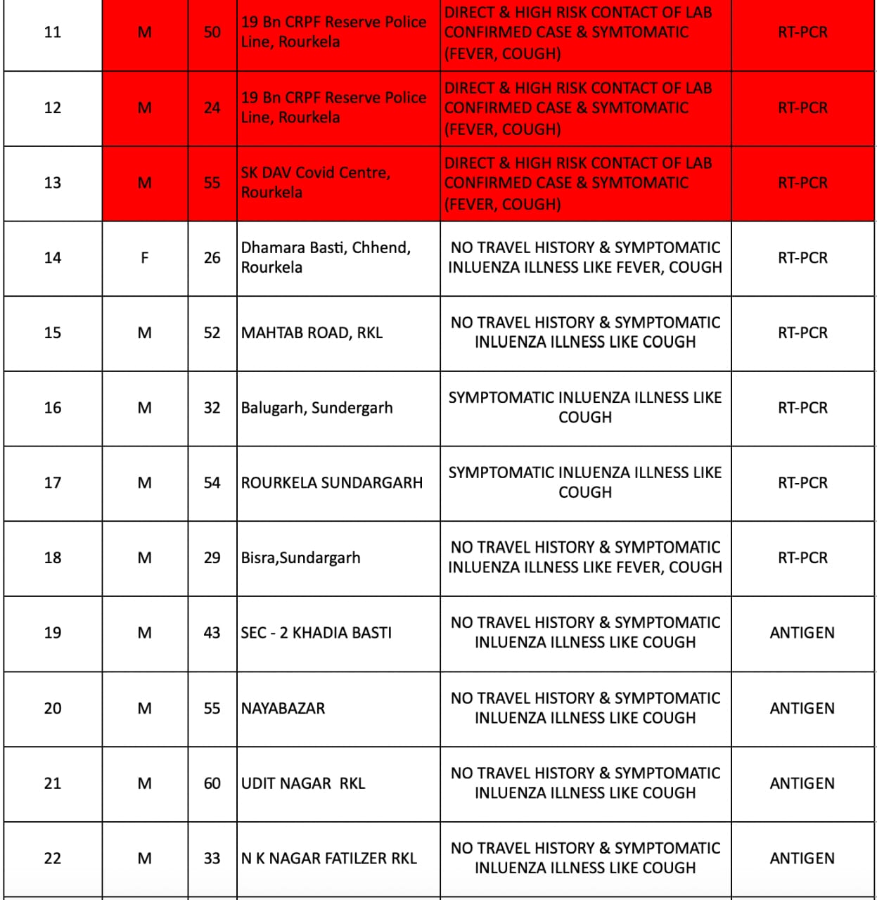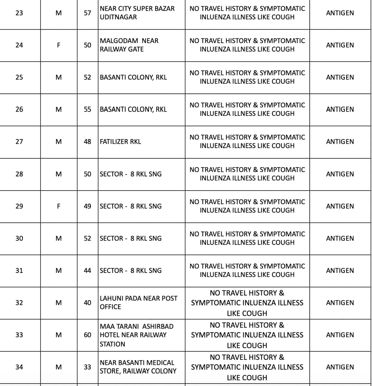 Out of the 34 new local contact cases reported in the district, 33 are from Rourkela Municipal Corporation (RMC) area while one is from Baligarh in Sundargarh Sadar block.