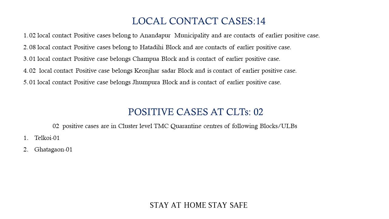 Eight among the local contact cases have been reported from Hatadihi block alone and they are contacts of an earlier positive patient.