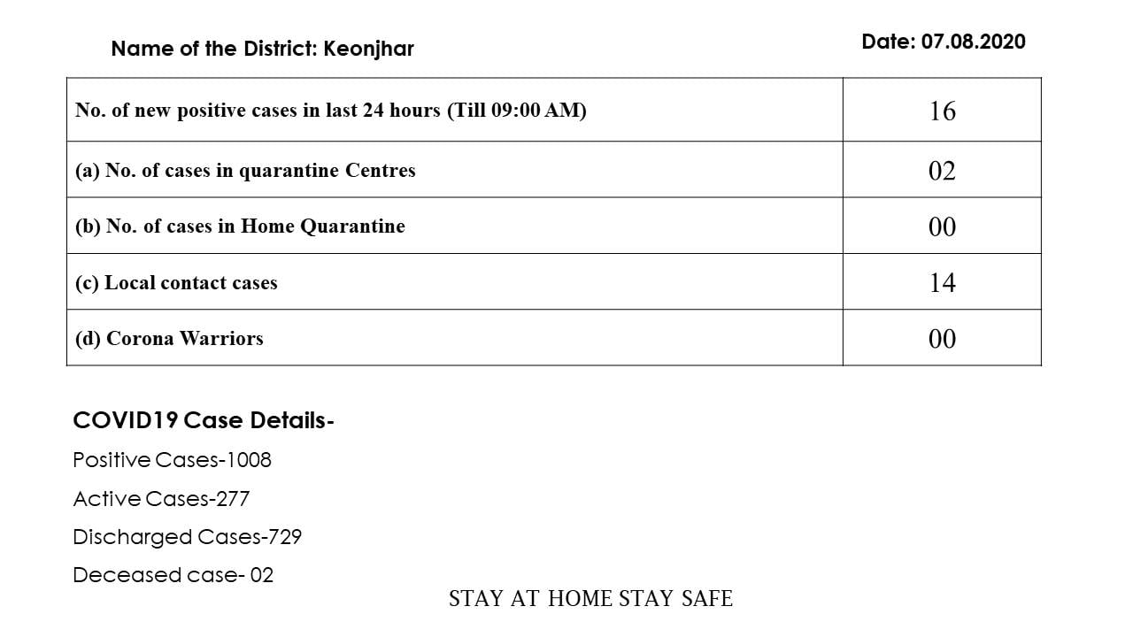 Keonjhar: The COVID-19 caseload in the district touched 1006 cases on Friday with 16 new cases.