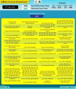 Bhubaneswar: The COVID-19 cases in the state capital reported the highest-ever single-day spike on Tuesday with 773 cases in the last 24 hours.