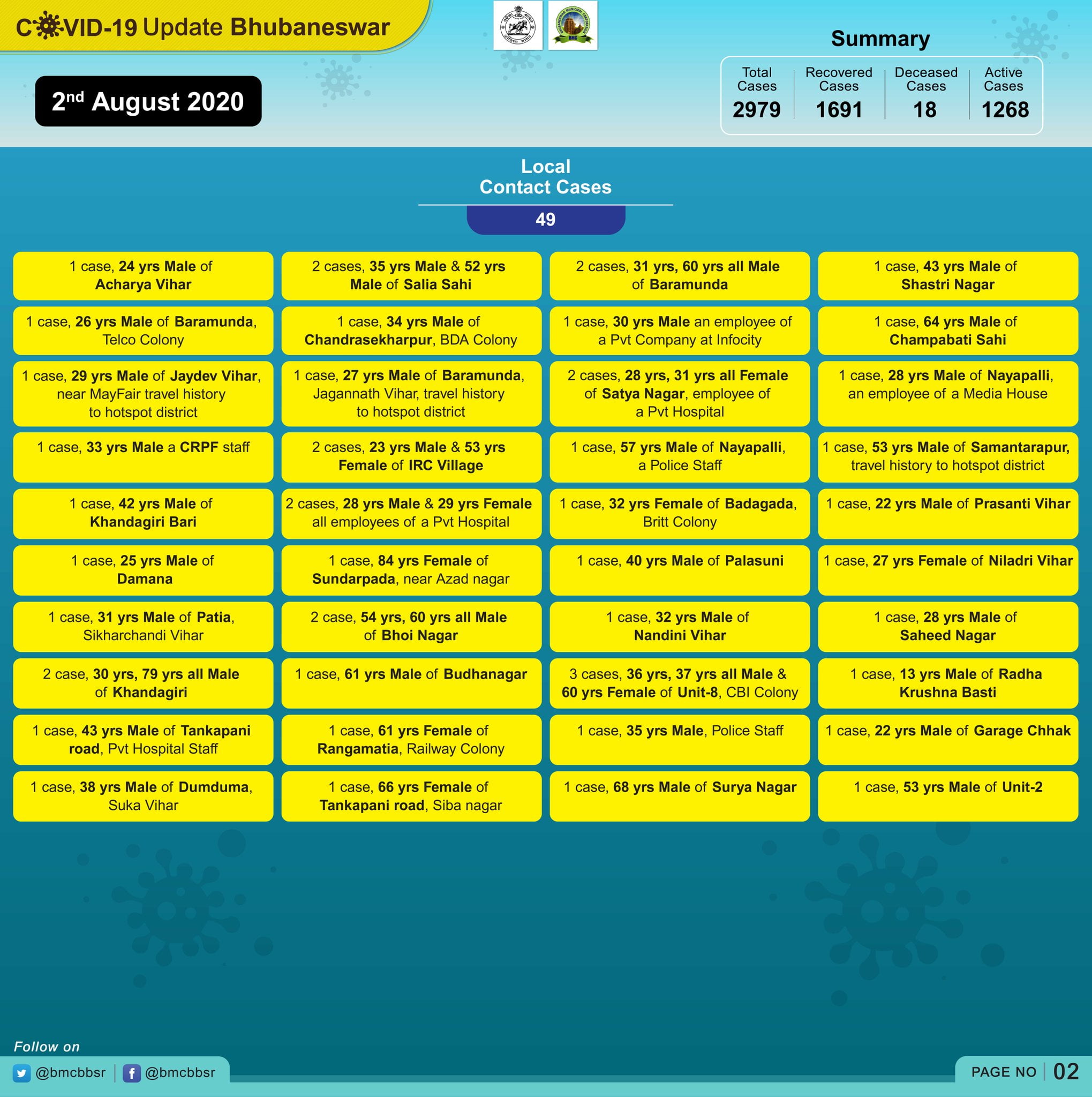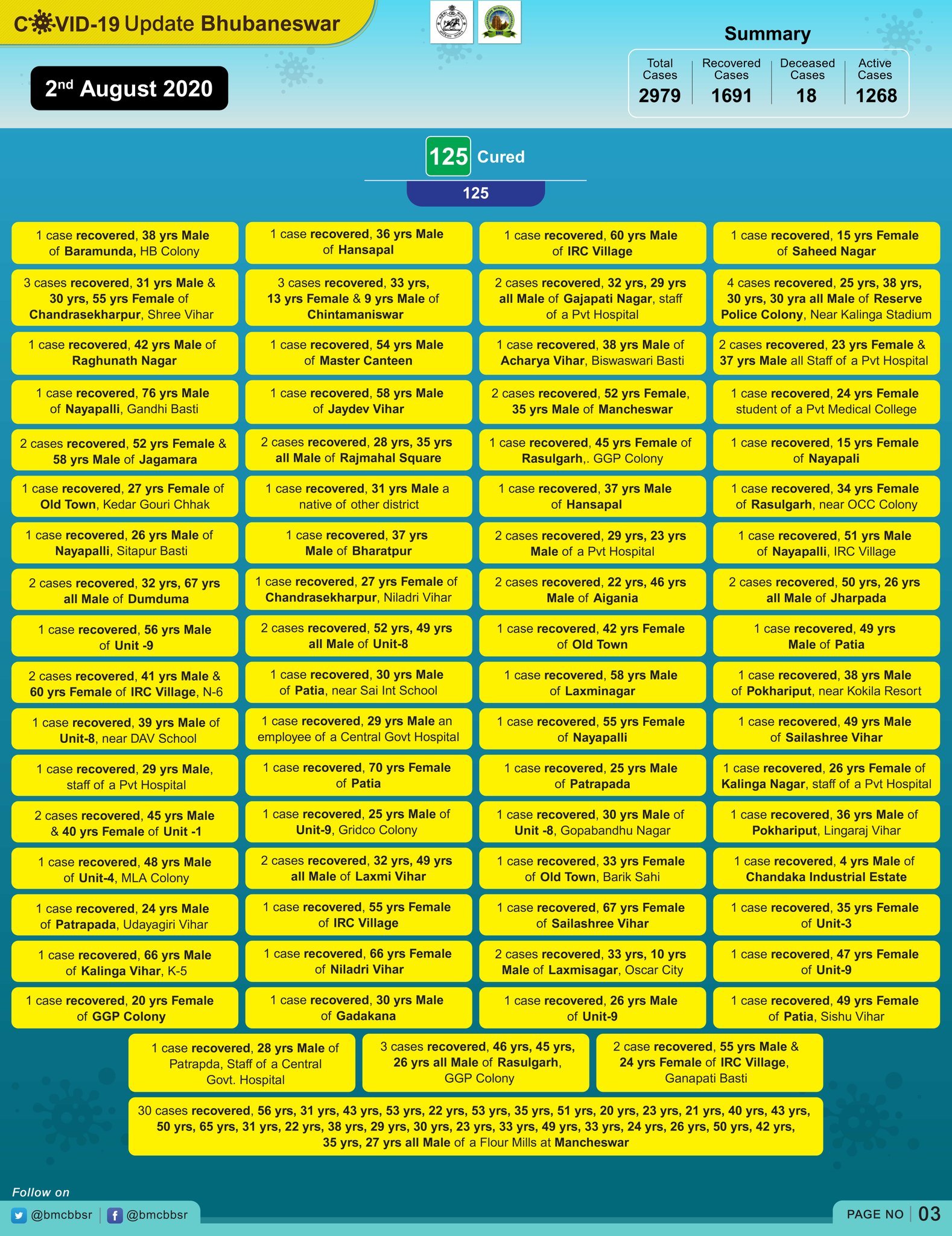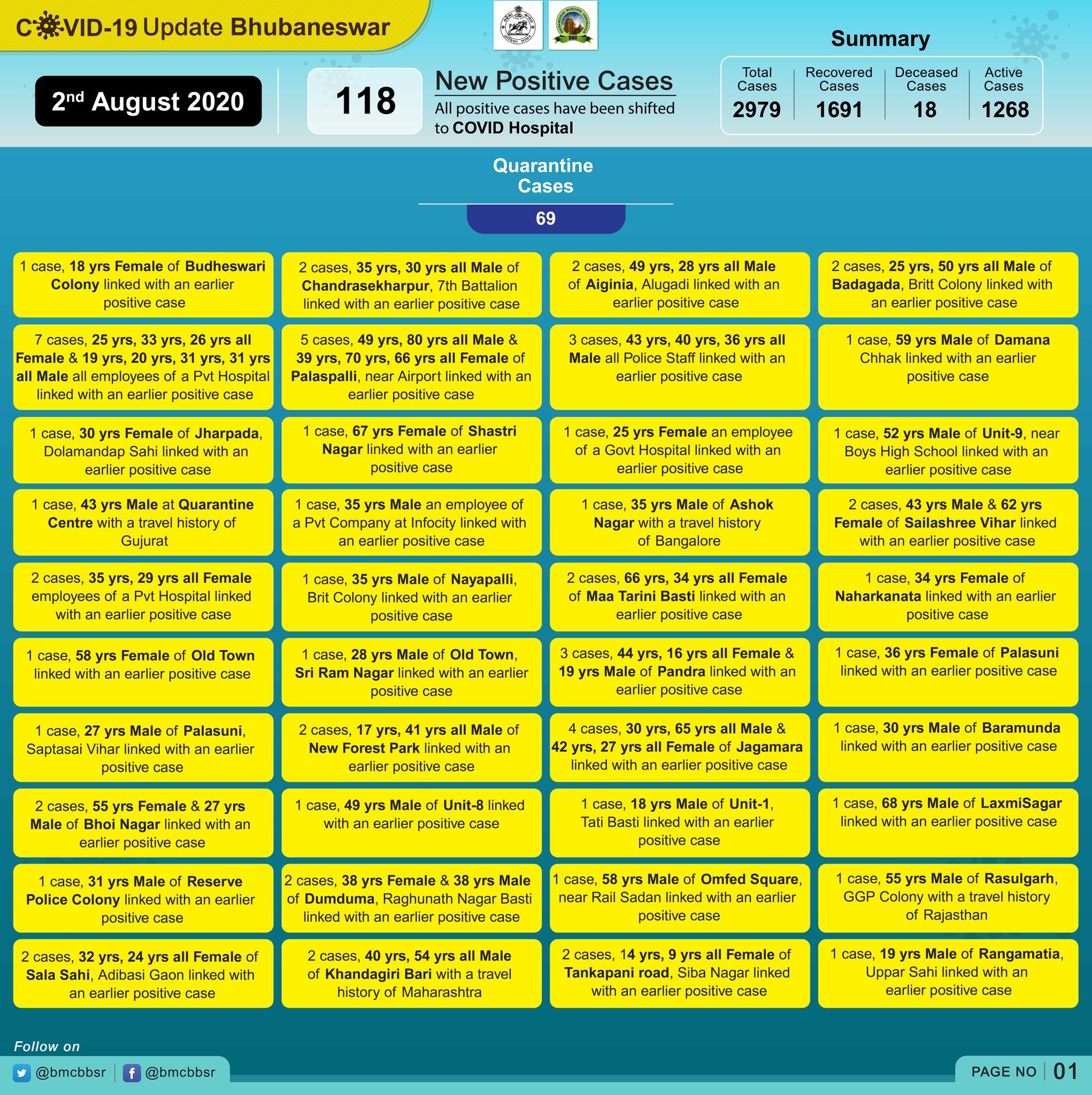 With 18 deaths and 1691 recoveries, Bhubaneswar now has 1268 active cases.