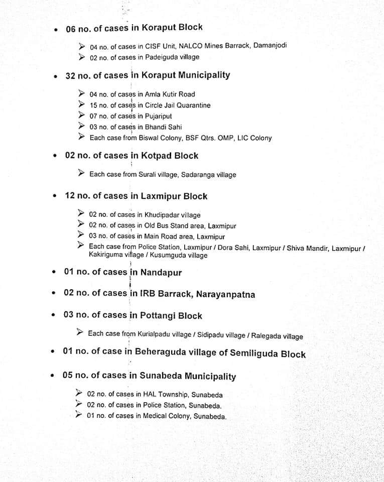 The highest of 32 have been reported from Koraput municipality, followed by 14 from Bandhugaon, 12 from Laxmipur block, 11 from Jeypore municipality, six from Koraput block, five from Sunabeda municipality, three each from Dasmantpur and Pottangi, two each from Jeypore block, Kotpad and Narayanpatna, and one each from Nandapur, and Semiliguda.