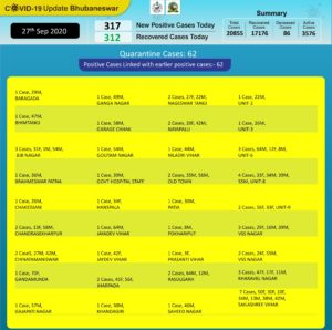 Bhubaneswar: COVID-19 positive cases in the Odisha capital rose to 20,885 on Sunday with 317 new ones in the last 24 hours.