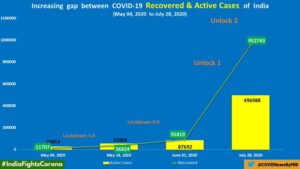 Also, India’s recovery rate crossed 64 per cent and improved to 64.24 per cent. The fatality rate of cases also dipped a bit to 2.25 per cent and is observed falling progressively, according to a PIB release.