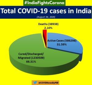 The cumulative recovered cases (12,30,509) though have surpassed active cases by 6,44,211.