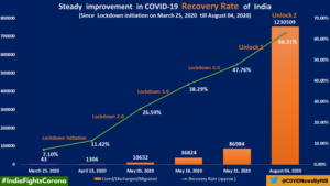 The fatality rate of cases dipped a bit to 2.10 per cent and was observed to be falling progressively, according to a Health Ministry release. Also, India’s recovery rate continues to rise and now stands at 67.31 per cent.