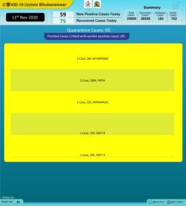 Bhubaneswar: The downward trend of daily COVID-19 positive cases in the city continued on Wednesday as 59 persons tested positive for the disease in the last 24 hours.