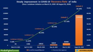 The cumulative recovered cases (11,45,629) have surpassed active cases by 5,77,899. Also, India’s recovery rate remains at 65.44 per cent. The fatality rate of cases though dipped a bit to 2.13 per cent and is observed to be falling progressively, according to a Health Ministry release.