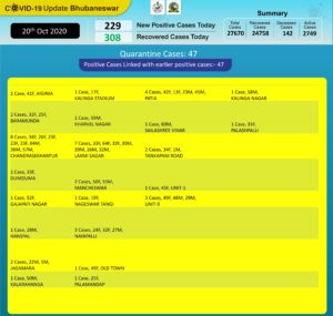 Bhubaneswar: The COVID-19 positive cases in the state capital went up to 27,670 on Tuesday with 229 new cases in the last 24 hours.