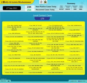 The daily COVID caseload was 234 in the city in the last 24 hours. The new cases included 61 from quarantine and 173 local contacts, according to Bhubaneswar Municipal Corporation (BMC).