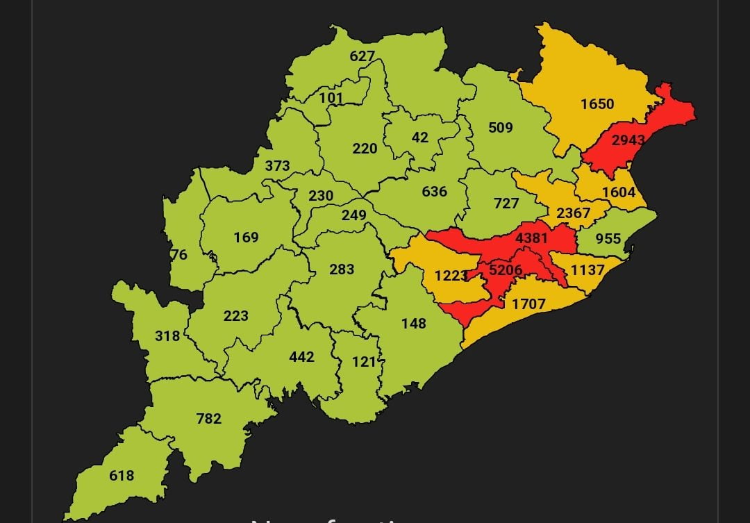 Khurda, however, continues to remain in the RED zone with 5206 active cases. The other three districts in this zone are Cuttack (4381) and Balasore (2943).