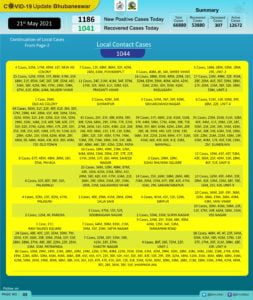 Bhubaneswar: COVID-19 cases in the state capital went up to 66,880 on Friday after 1,186 new cases were reported in the last 24 hours.