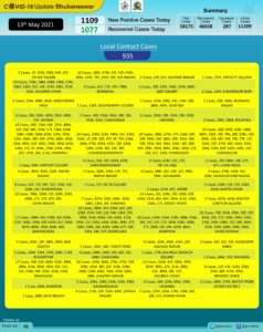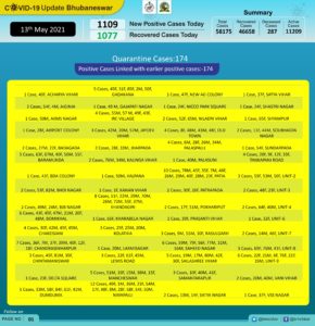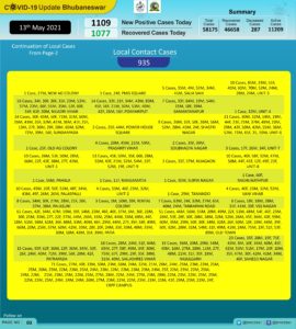 Bhubaneswar: The COVID-19 tally in the state capital went up to 58,175 on Thursday with 1109 new cases in the last 24 hours.