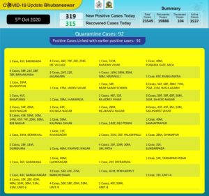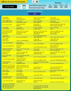 Bhubaneswar: COVID-19 positive cases in Bhubaneswar rose to 23,549 on Monday after 319 fresh cases were reported in the last 24 hours.