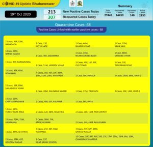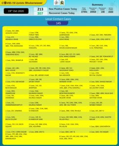 Bhubaneswar: Although the number of COVID-19 cases has come down further in the state capital, with 213 new cases in the last 24 hours, infections through local contacts remain high.
