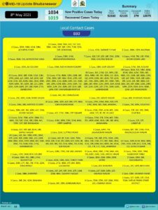 The number of new infections in Bhubaneswar since April 1 is 19,464, with the highest being on April 29 (1119 cases).