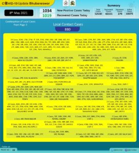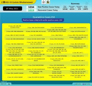 Bhubaneswar: The daily COVID-19 caseload in the state capital crossed 1000 for the fifth consecutive day with 1034 new cases being reported in the last 24 hours on Saturday.