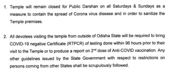 The meeting held through video conferencing under the chairmanship of Chief Administrator of Shree Jagannath Temple Administration (SJTA) Krishan Kumar decided to impose more restrictions to contain the spread of the virus.