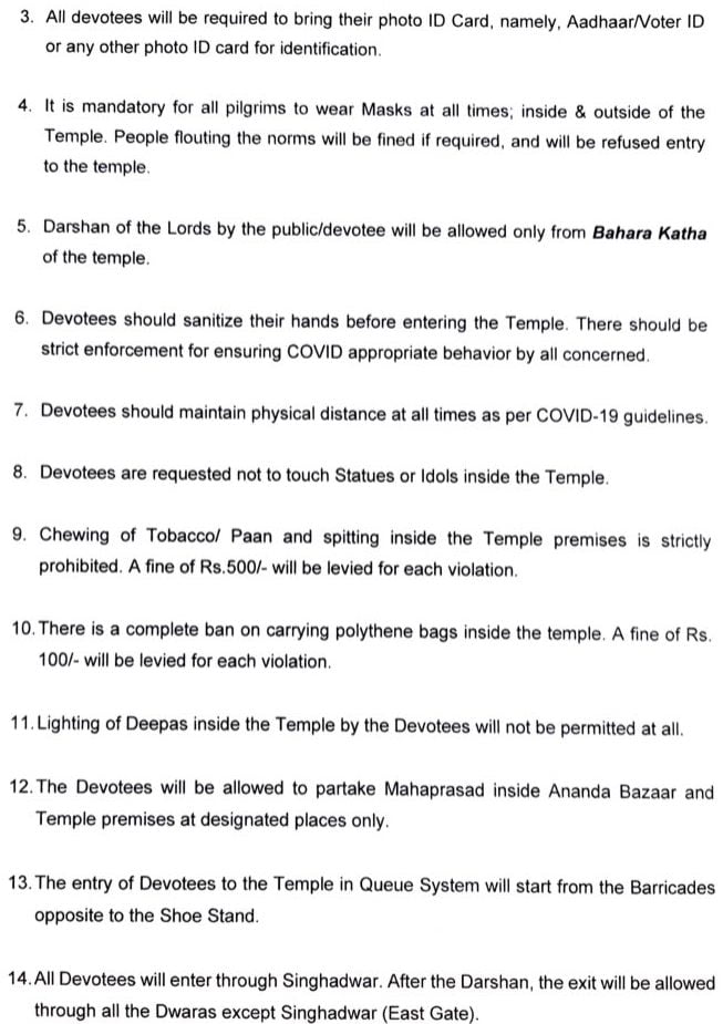 Puri: Amid the upsurge in COVID-19 cases, fresh SOPs were issued on Friday for entry into Jagannath Temple in Odisha’s Puri.