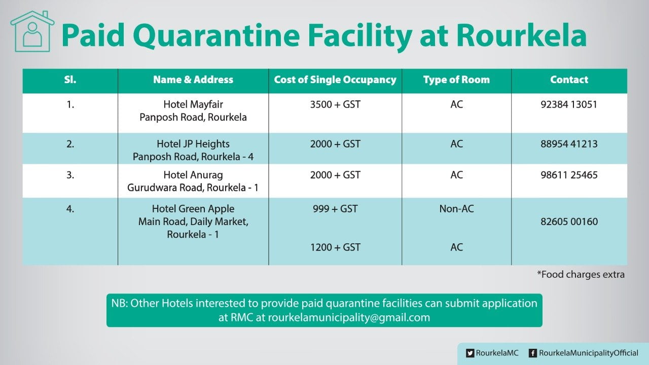 Hotel Mayfair and Hotel JP Heights at Panposh Road, Hotel Anurag at Gurudwara Road, and Hotel Green Apple at Main Road daily market will serve as paid quarantine.