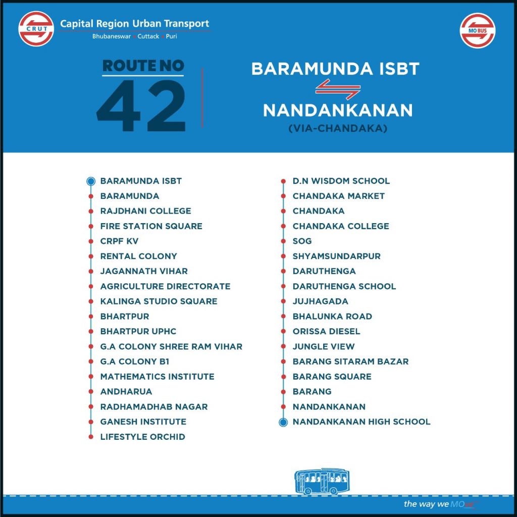 Similarly, the buses on route No 42 will ply between Baramunda ISBT and Nandankanan via Chandaka.