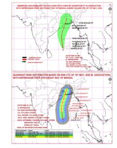 It is very likely to intensify rapidly into a cyclonic storm during next 12 hours and further into a severe cyclonic storm during the subsequent 24 hours. It is likely to move north-northwestwards initially till May 17 and then re-curve north-northeastwards across northwest Bay of Bengal towards West Bengal coast between May 18 and 20.