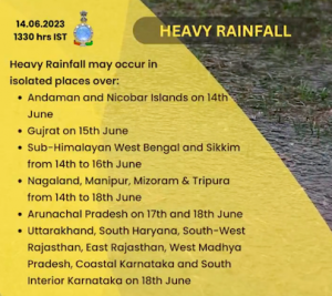 Heavy to very heavy rainfall is expected in Kutch, Devbhumi Dwarka, Porbandar, Jamnagar, Rajkot, Junagarh and Morbi on June 15 with waterlogging in low-lying areas of Kutch, Devbhumi Dwarka, Morbi. The MeT office has also warned of extensive damage to thatched houses in these areas.