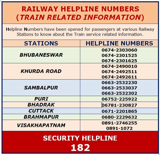 Bhubaneswar: The East Coast Railways (ECoR) has opened helpline numbers to help passengers with train-related information.