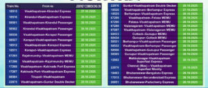 1. 18005 Howrah- Jagdalpur Samaleswari express leaving Howrah on 27.10.2025 will be short terminated at Rayagada and will return as 18006 from Rayagada to Howrah on 28.10.2025. Hence there will be no service of this train between Rayagada and Jagadalpur on 28.10.2025.