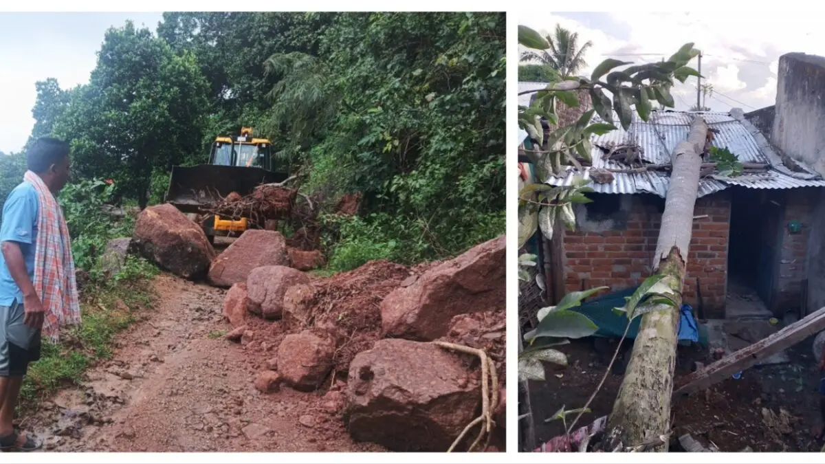 Bhubaneswar: As cyclone Montha moved towards the coast, heavy rain lashed several parts of Odisha, causing landslides, uprooting trees and damaging houses in districts such as Gajapati and Rayagada on Tuesday.