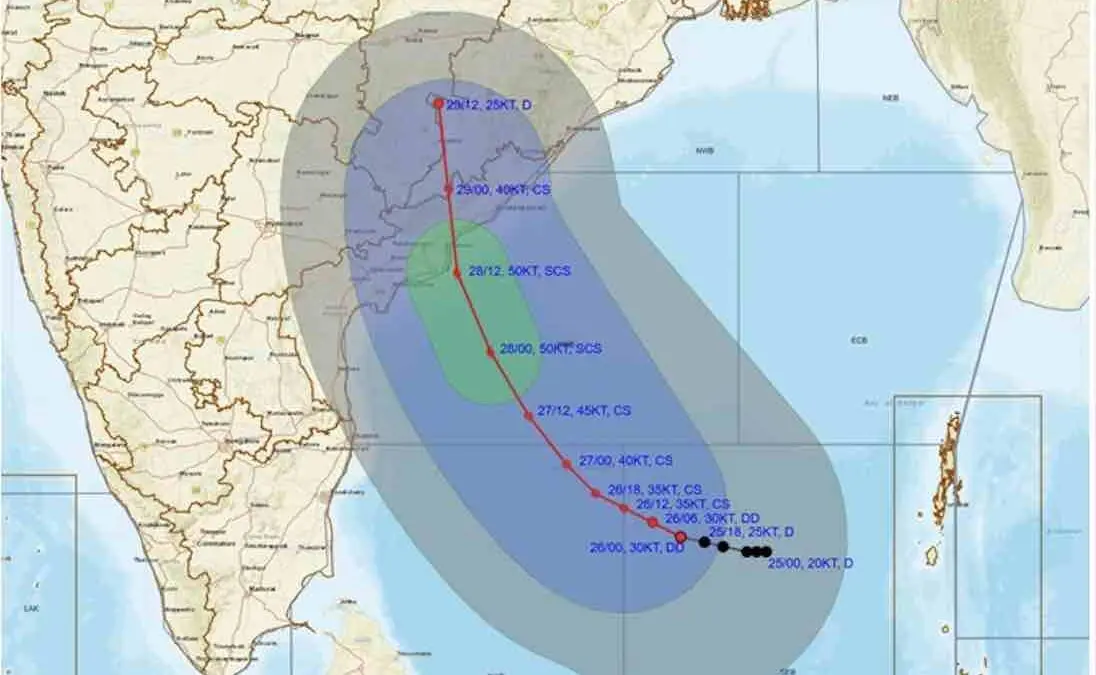 The storm, named Montha, is expected to make landfall near Kakinada in Andhra Pradesh on the night of October 28 as a severe cyclonic storm.