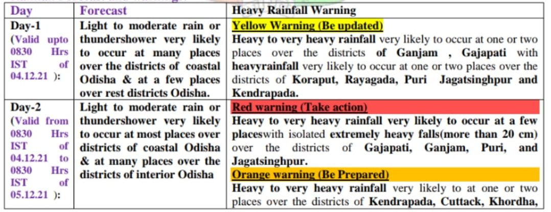 Mohapatra said that several parts of Odisha and Andhra Pradesh will start experiencing moderate to heavy rainfall from December 3 and the intensity is likely to increase from December 4.