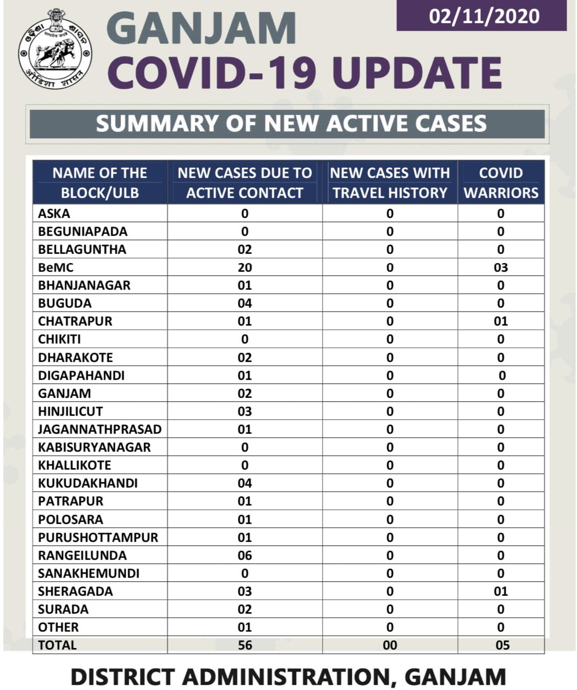 Berhampur: After a gap of more than one month, Ganjam district saw over 60 people testing positive for the virus in the last 24 hours.