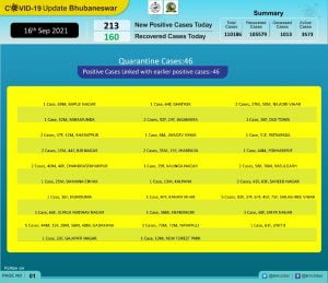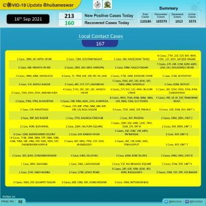 According to Bhubaneswar Municipal Corporation (BMC), 46 of the new infections are from quarantine and 167 local contacts.