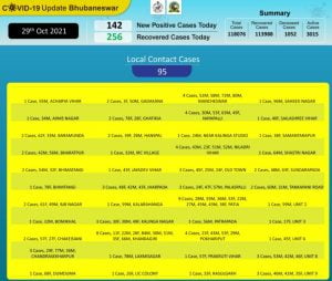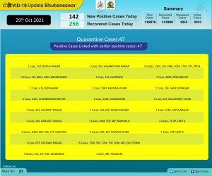 According to Bhubaneswar Municipal Corporation (BMC), 47 of the new patients on the day are from quarantine and 95 local contacts.
