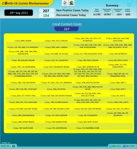 According to Bhubaneswar Municipal Corporation (BMC), 40 of the new patients on the day are from quarantine and 167 local contacts.