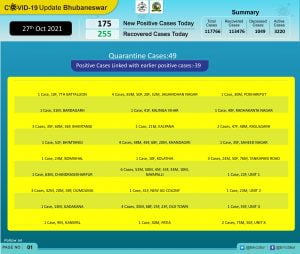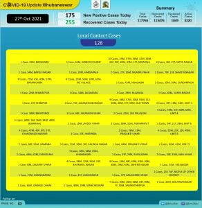 According to Bhubaneswar Municipal Corporation (BMC), 49 of the new patients on the day are from quarantine and 126 local contacts.