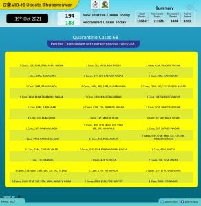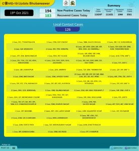 Bhubaneswar: The daily COVID-19 caseload in the capital city remained below 200 for five days in a row as 194 persons tested positive for the disease in the last 24 hours.